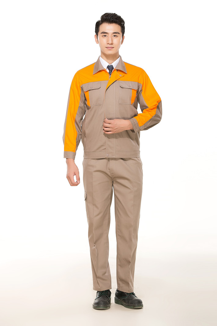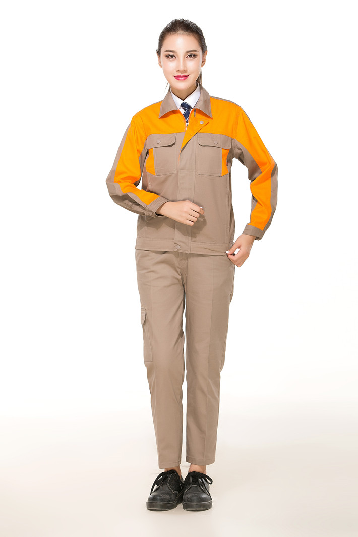 淮南全棉工作服定做款式灰色拼桔黃色長袖套裝GZ-8017