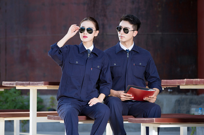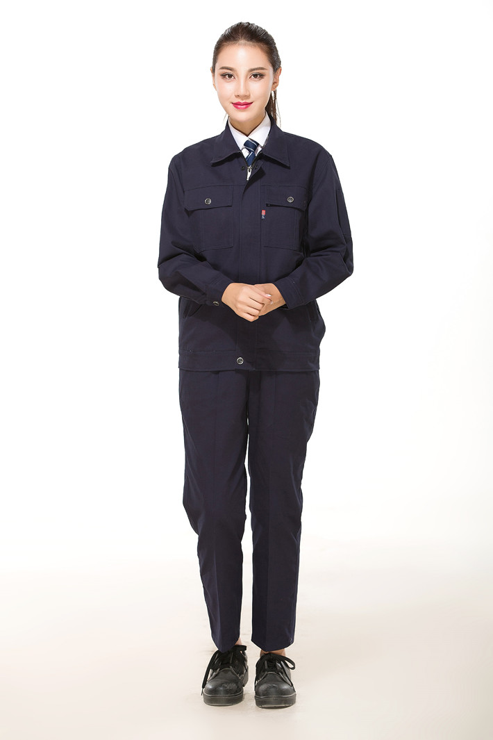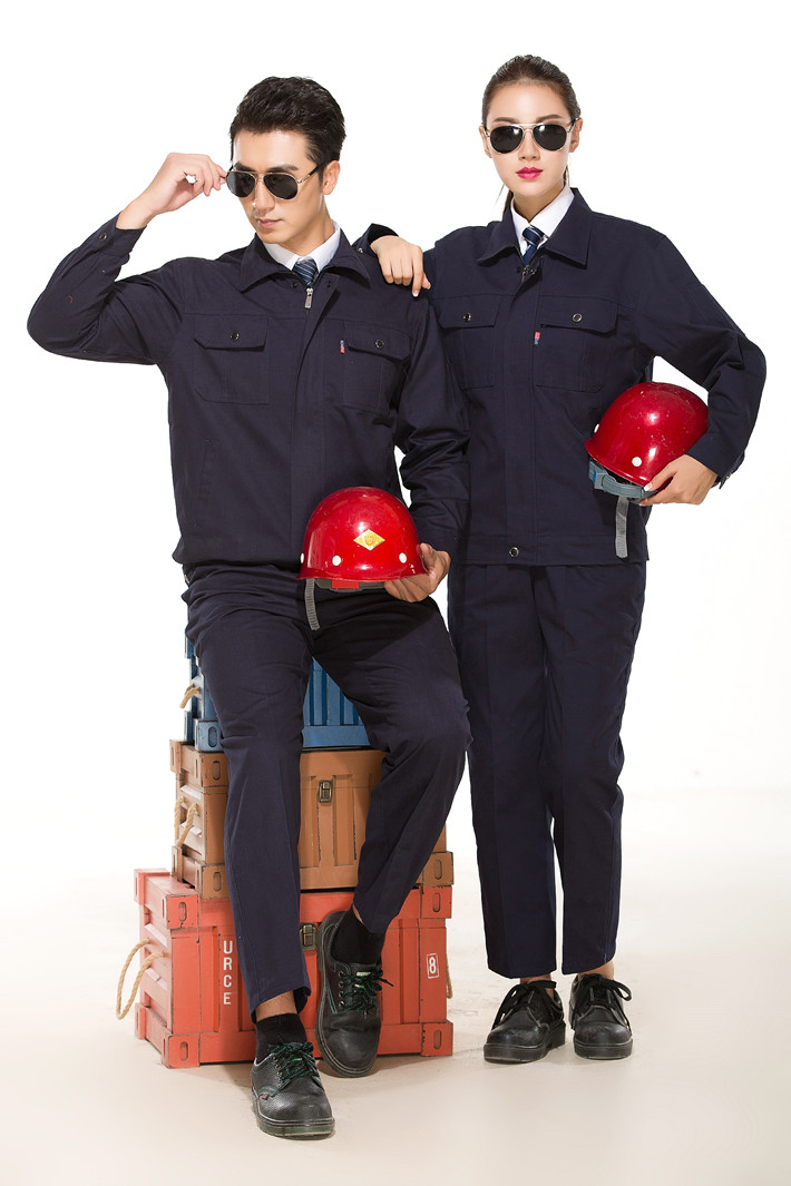 壽縣工作服定做廠家定制工服款式全棉藏青色工作服長裝GZ-8021