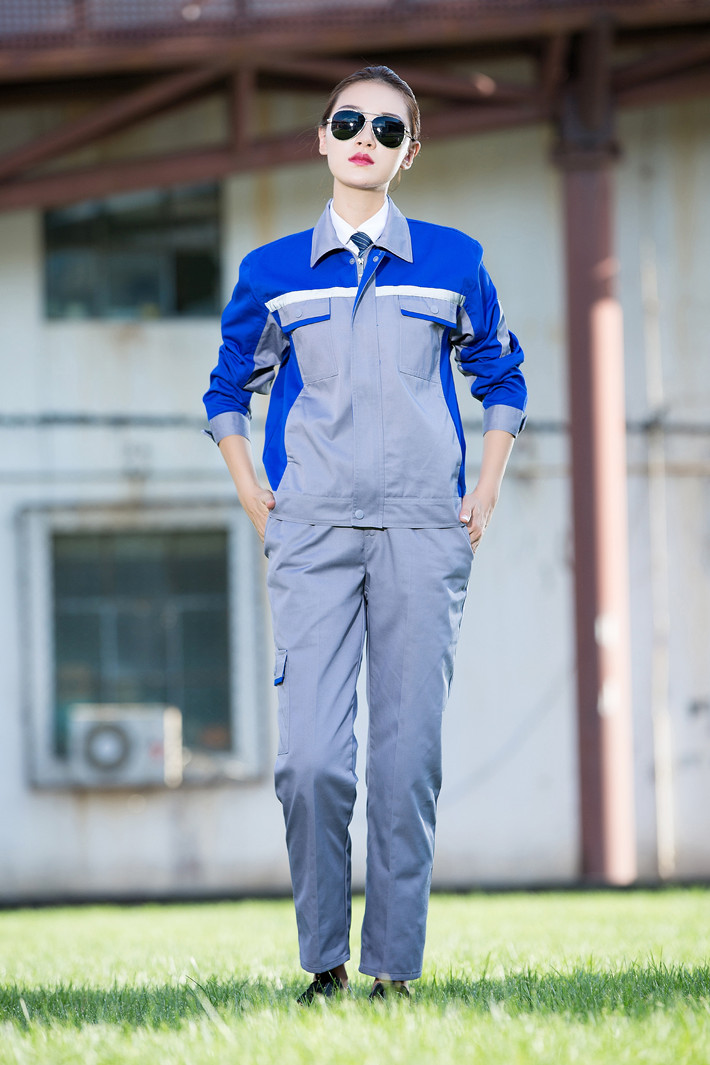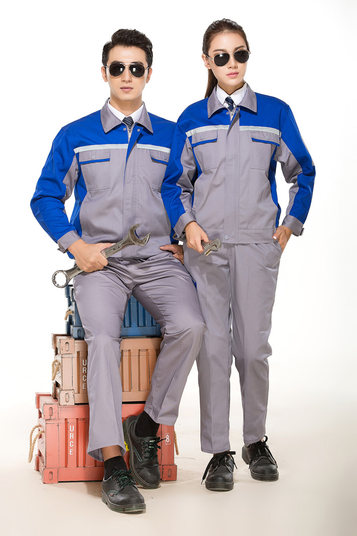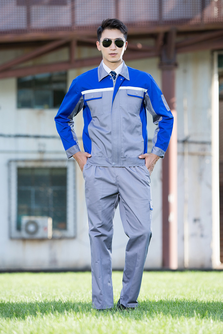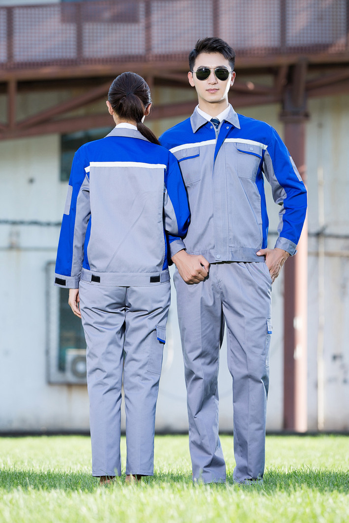 滌棉灰色拼藍色反光條工作服套裝FG-8001