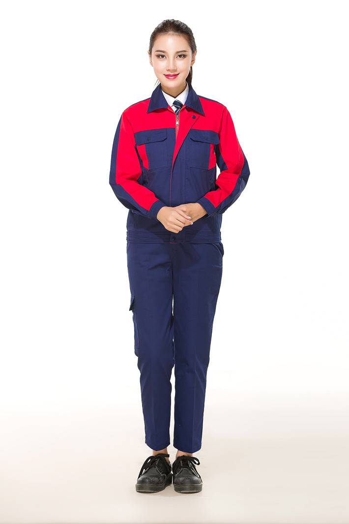 全棉紗卡藏青色拼紅色拉鏈式工作服長袖套裝GZ-8019