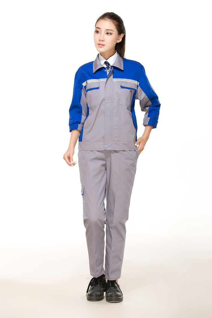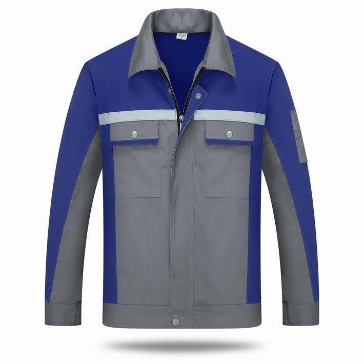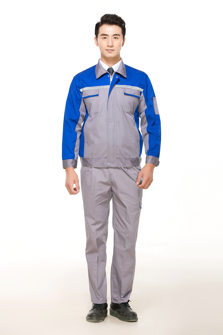 滌棉反光條灰色拼藍(lán)色馬鞍山工作服GZ8013