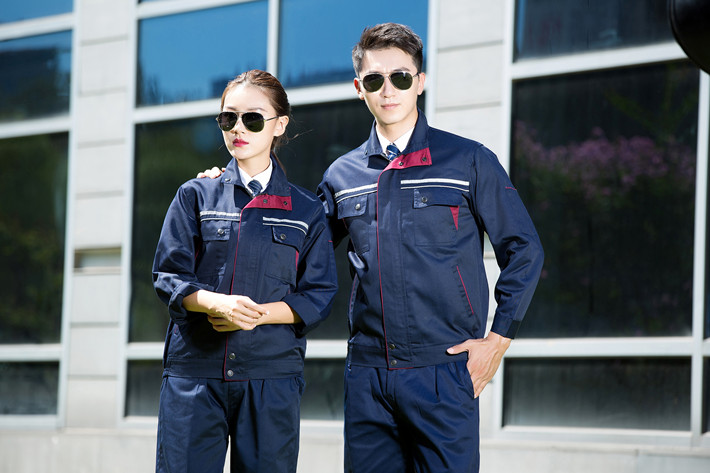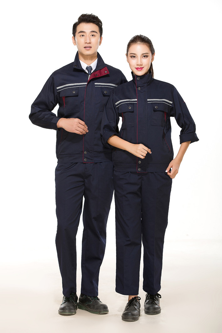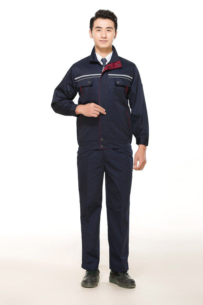 滌棉藏青色立領拼色拉鏈式反光條工作服長袖套裝GZ-8026