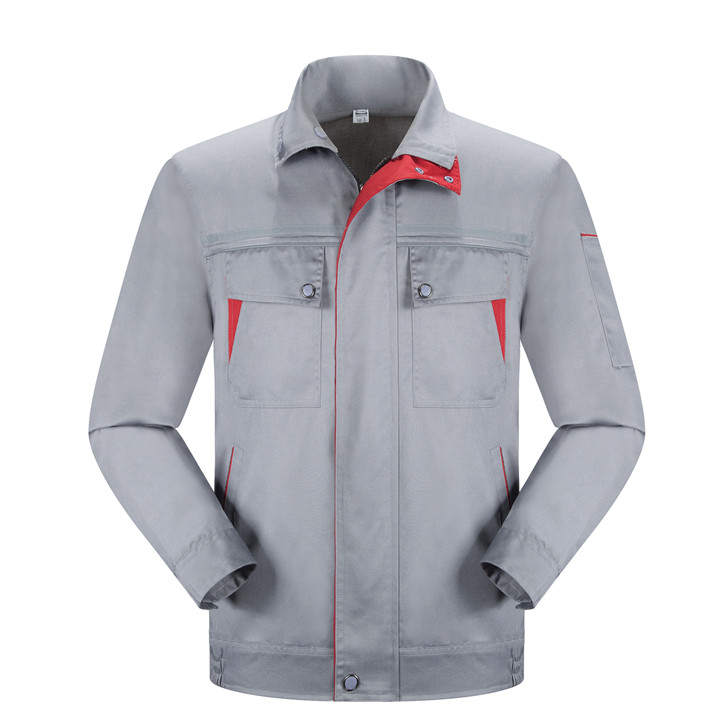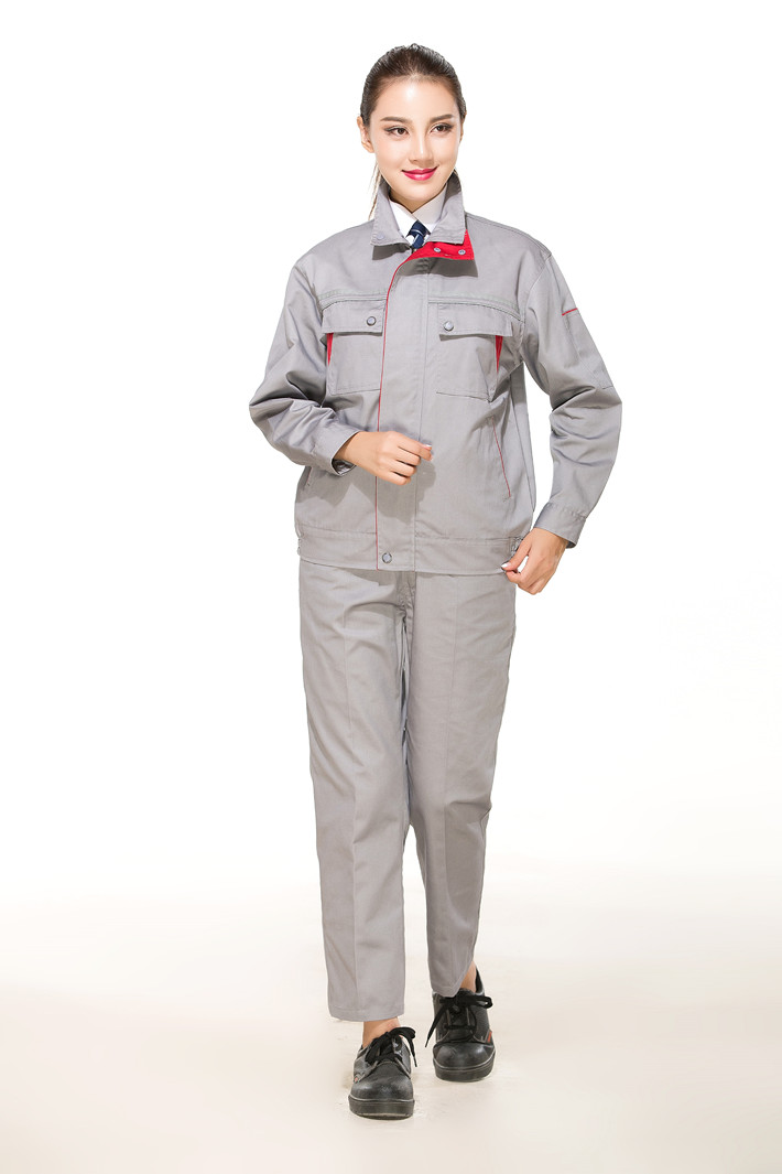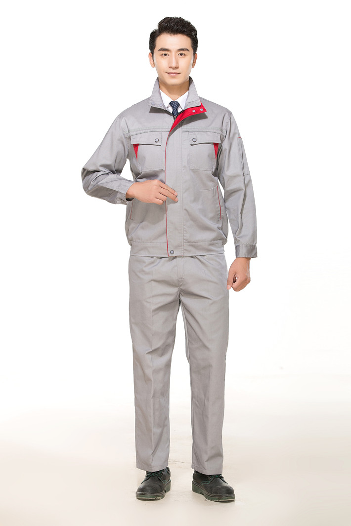 滌棉淺灰色立領(lǐng)拼色拉鏈式反光條工作服長袖套裝GZ-8027