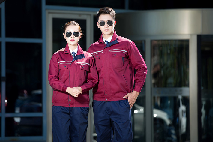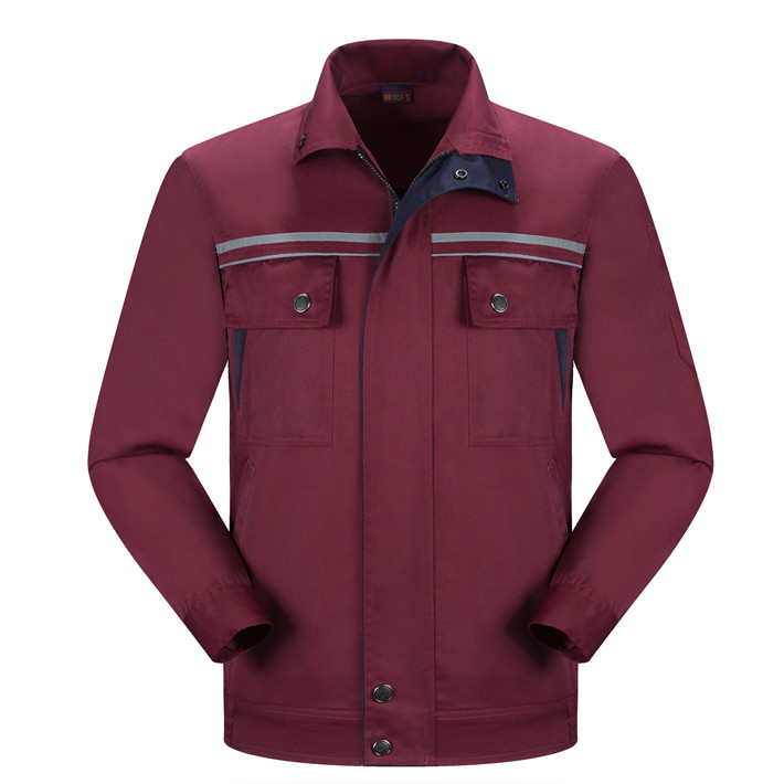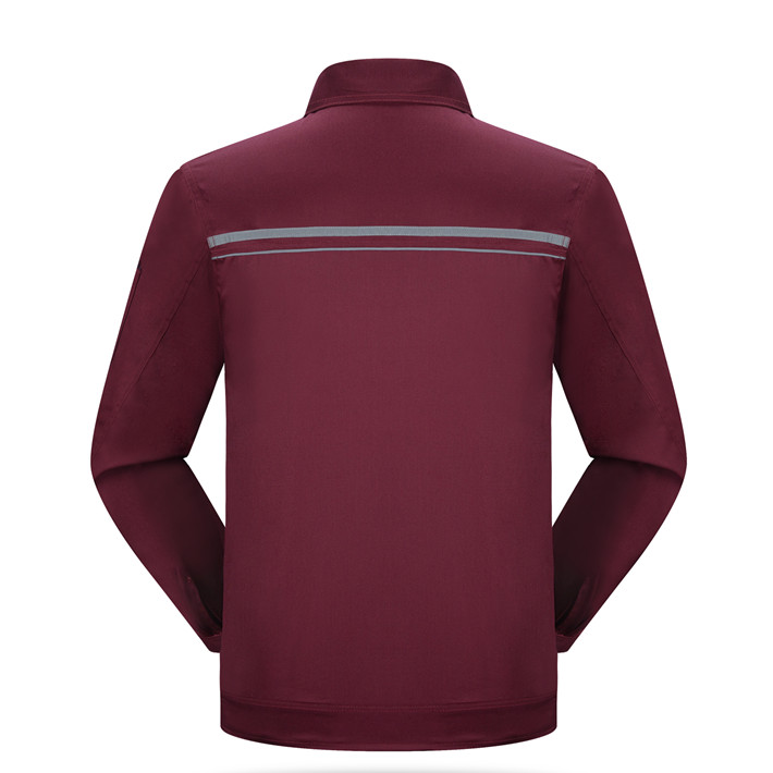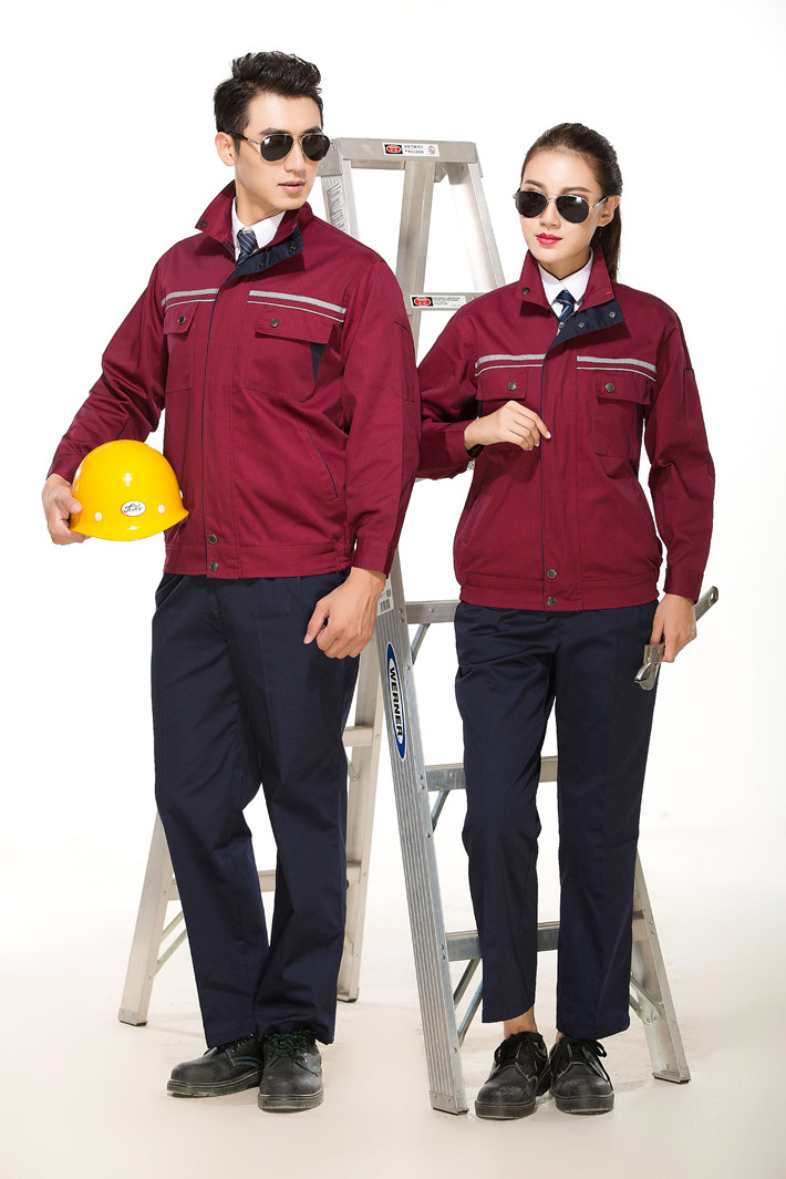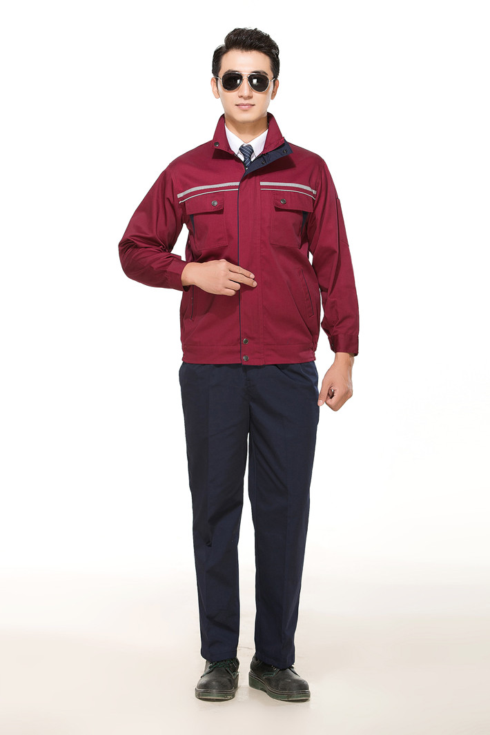 滌棉棗紅色立領拼色拉鏈式反光條工作服長袖套裝GZ-8028