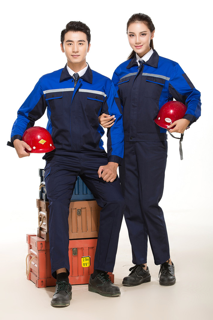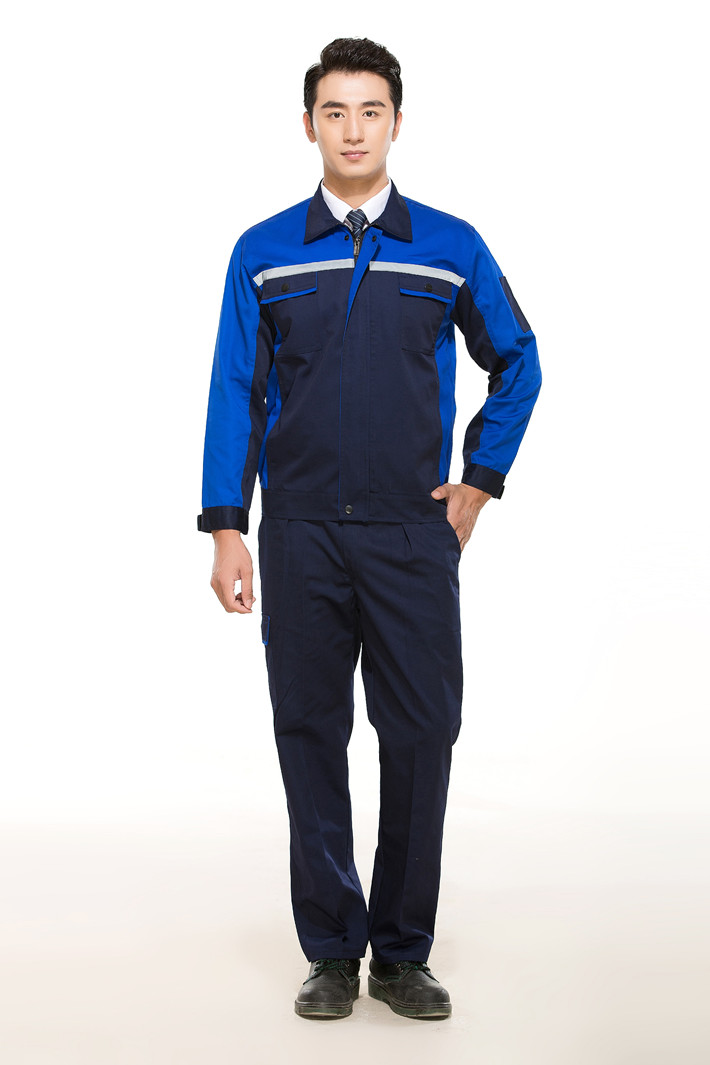 滌棉藏青色拼藍色反光條工作服套裝GZ-DM8011