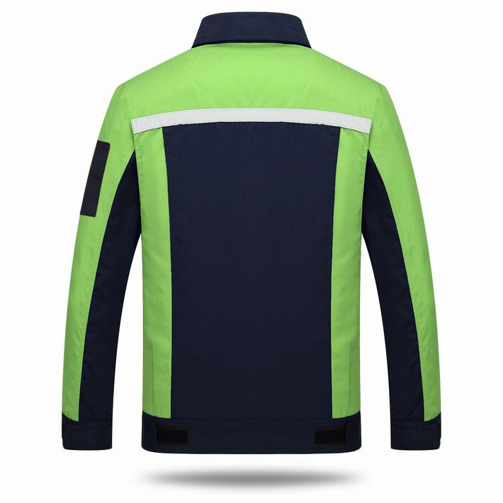 滌棉藏青色拼綠色反光條工作服長(zhǎng)袖套裝GZ-DM8016