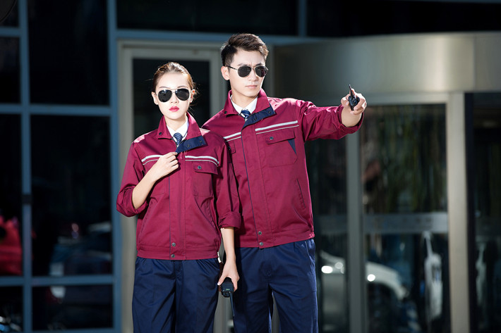 滌棉棗紅色立領拼色拉鏈式反光條工作服長袖套裝GZ-FGT8028