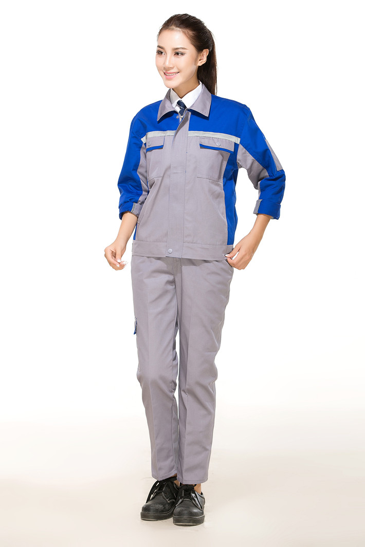 合肥工作服定制,定做合肥工作服款式灰色拼藍色套裝GZ-8013