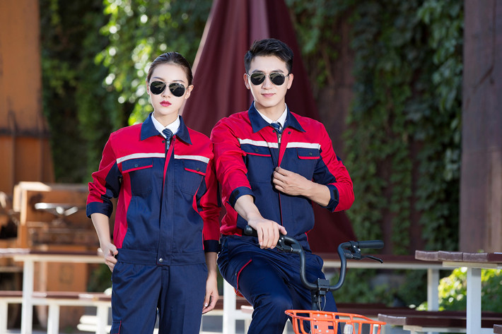 淮南工作服定制,定做淮南工作服款式灰色拼藍色套裝GZ-8013