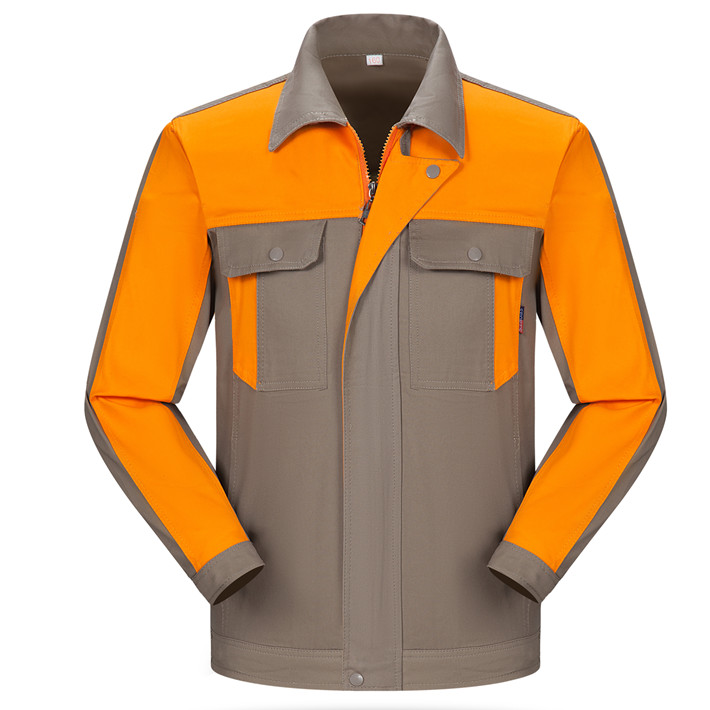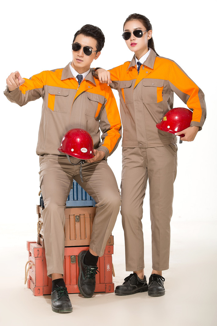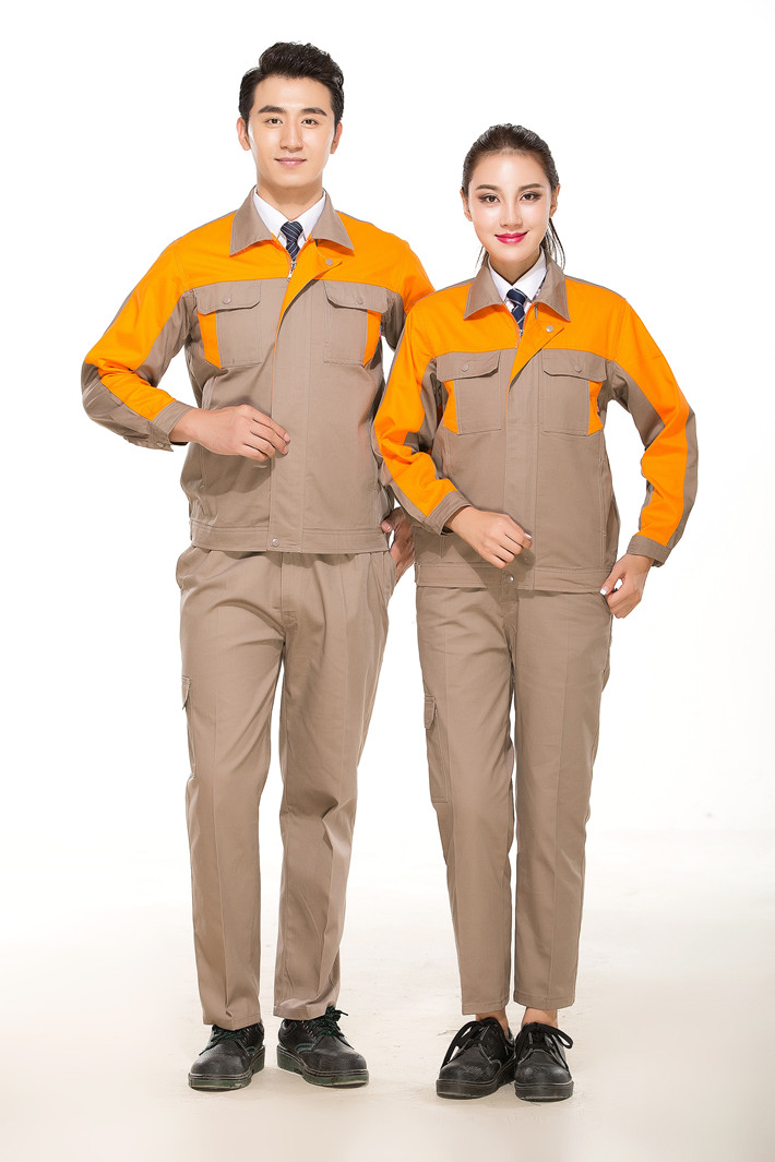 合肥全棉工作服定做款式灰色拼桔黃色長袖套裝GZ-8017